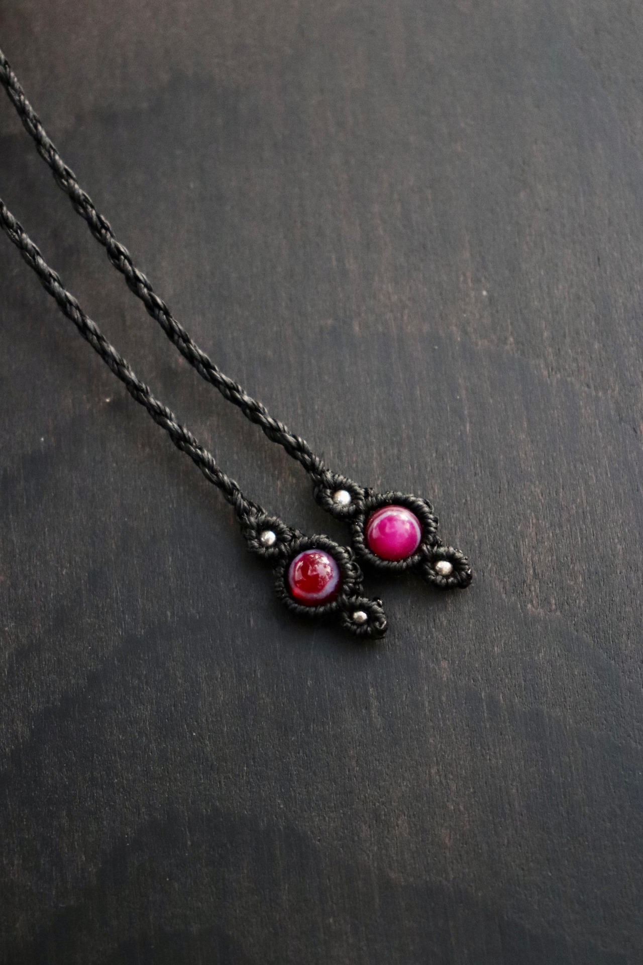 黒と蛍光ピンク、蛍光キャロットのワックスコードを使って作りました。