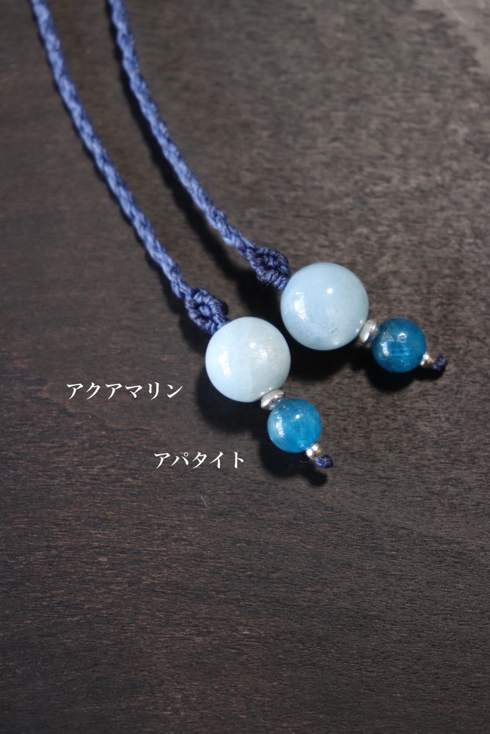 チョーカーエンドにはミルキーなアクアマリンと、ブルーアパタイトをあしらっております。