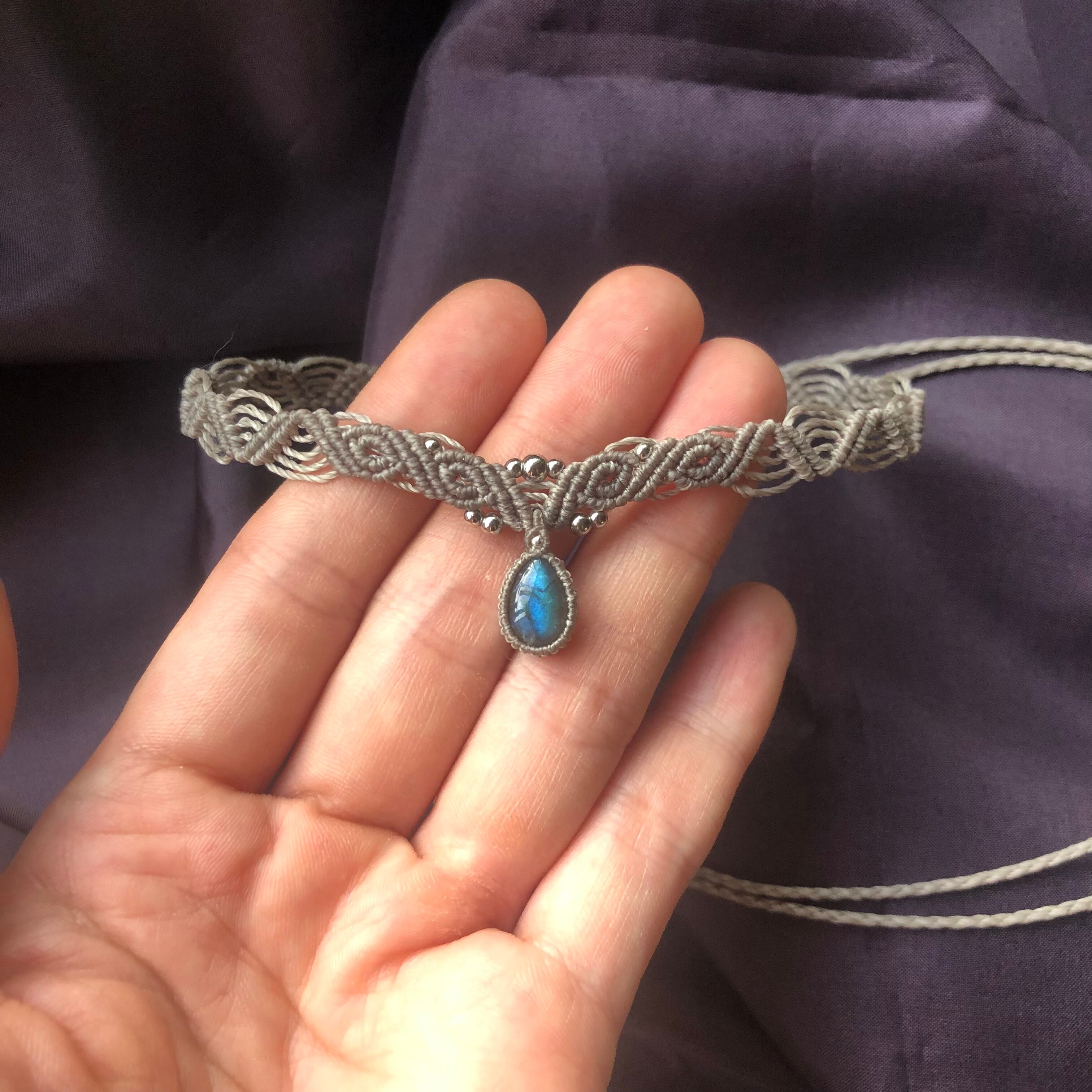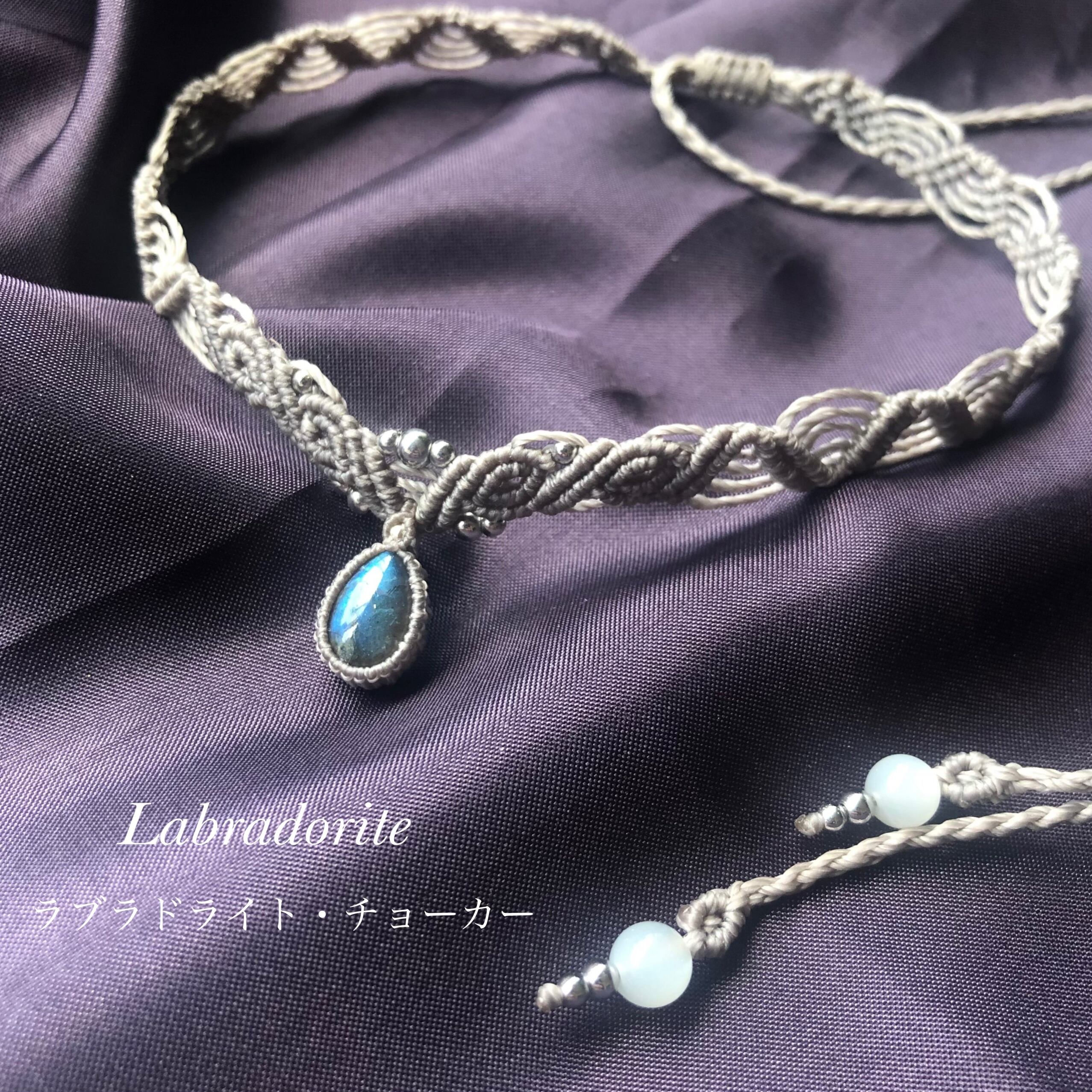 雫型の青が美しい小粒ラブラドライトを使用したシンプルなチョーカーです。